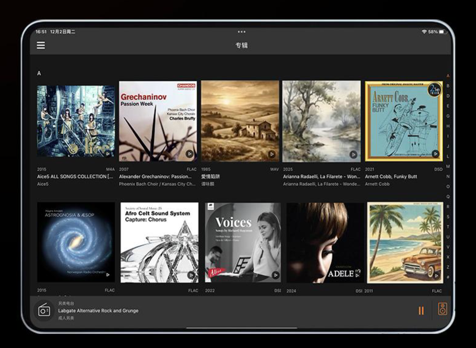 通过大屏电视的展示,配合移动端操控,还能实现本地云端无缝“穿越”:手机的曲子、QQ音乐超级会员的无损专辑、硬盘中的DSD母带、NAS里收藏的经典WAV,在APP里统一管理,想播哪首点哪首,就像在手机里逛独属于玩家的“音乐博物馆”!